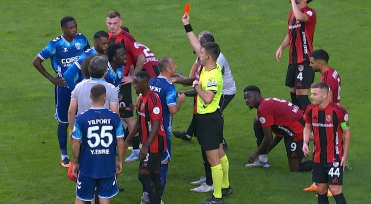 Samsunsporlu futbolcu Cherif Ndiaye ikili bir mücadele de ayak bileğine, taban bir şekilde sert müdahale ile karşı karşıya kaldı. Peki ne oldu dersiniz. Hakem Ndyaye lehine faul çalacak değil mi? Yok be kardeşim. Futbol katili hakem Batuhan Kolak Cherif Ndiaye'yi kırmızı kartla oyundan attı. Peki var devreye girdi mi yok. Sarı kartlarda devreye girmezmiş. Ayak bileğine taban var. Oradan var devereye giremez mi. Elbette devreye girer. Maçın başından sonuna kadar tüm takdir haklarını da yine Samsunspor aleyhine verdi hakemlık ünvanı verilen Batuhan Kolak.